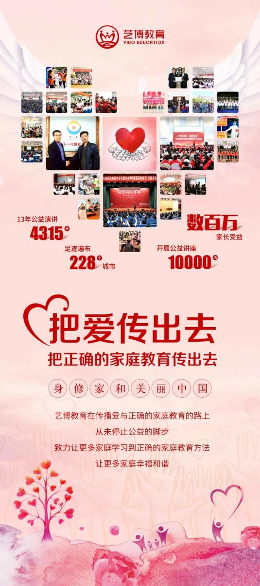 為普及家庭教育基礎(chǔ)知識,關(guān)愛幫扶留守兒童,受各地婦聯(lián)、教育局邀請,藝博專家講師團(tuán)在全國貧困地區(qū)還進(jìn)行了家庭教育公益巡講活動,公益巡講活動在全國貧困地區(qū)開展近200場,覆蓋6個省、21個地區(qū),受眾近3萬余人;