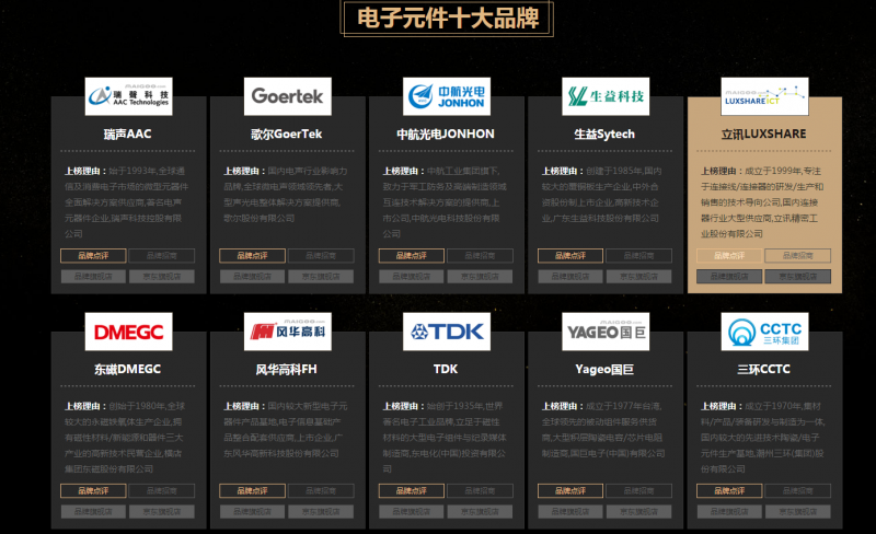 2019電子元件十大品牌排行榜,是CNPP數(shù)據(jù)研究,十大品牌網(wǎng)china-10.com聯(lián)合重磅推出的十大電子元件品牌排行榜,電子元件10大品牌榜。十大品牌名單展示各行業(yè)數(shù)據(jù)前10強(qiáng),是由品牌信用指數(shù)及幾十項(xiàng)數(shù)據(jù)統(tǒng)計(jì)計(jì)算系統(tǒng)自動(dòng)生成的,不是認(rèn)定認(rèn)證、不是競(jìng)價(jià)排名、不是表彰評(píng)選、不是評(píng)獎(jiǎng)評(píng)比,它是企業(yè)品牌信用指數(shù)以及幾十項(xiàng)數(shù)據(jù)統(tǒng)計(jì)計(jì)算真實(shí)呈現(xiàn)的結(jié)果,排序不分先后,無(wú)需企業(yè)申請(qǐng)申報(bào),不存在評(píng)定評(píng)選的過(guò)程,企業(yè)不需要交納任何費(fèi)用,無(wú)償服務(wù)于廣大消費(fèi)者。