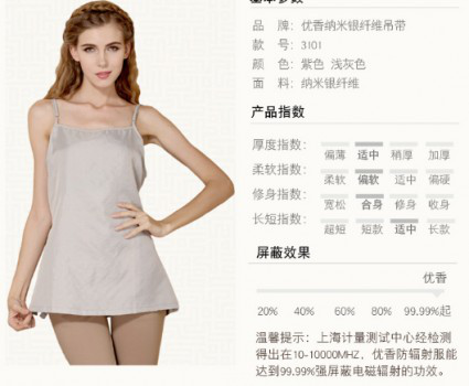 優(yōu)香也是國內(nèi)最早進(jìn)入民用防輻射服領(lǐng)域的廠家之一,針對不同消費(fèi)群體設(shè)計(jì)多種不同的防輻射服供消費(fèi)者選用。