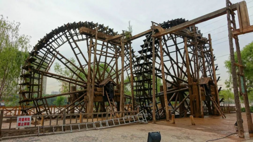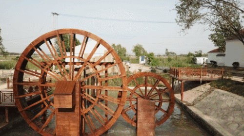 古樸的水車造型,跟隨著水流而轉(zhuǎn)動(dòng)
