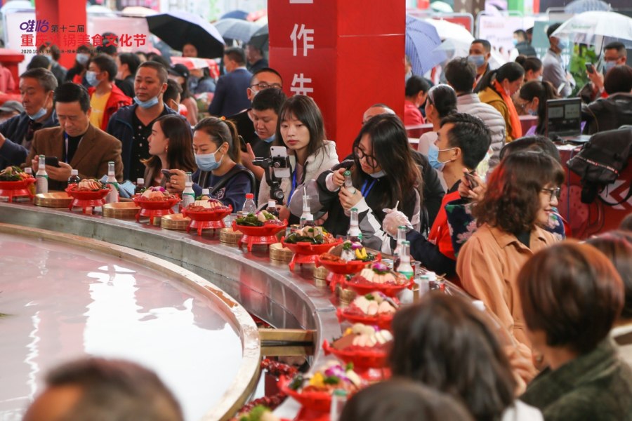 除了萬人火鍋宴、德莊·天下第一大火鍋、重慶火鍋圖騰柱等標(biāo)配陣容外,本次火鍋節(jié)也帶來了許多新的打卡勝地。由3噸火鍋底料制作的火鍋文化墻,用牛油雕刻8米長的重慶火鍋的起源和發(fā)展,給人以感官上的震驚和心靈上的震撼。據(jù)組委會介紹,秉持節(jié)約原則,火鍋墻在結(jié)束3天的展示后,將科學(xué)回收,杜絕浪費(fèi)。矗立在北室外廣場上的火鍋直播間,也由重慶火鍋老板與紅人主播共同入駐,與火鍋節(jié)同期向全網(wǎng)推薦重慶火鍋及周邊產(chǎn)品。由創(chuàng)意商家打造的火鍋潮辣市集則匯集到火鍋文創(chuàng)、跨界產(chǎn)品、趣味互動、拍照打卡于一體的文創(chuàng)展,市民在此可以感受新奇的火鍋跨界產(chǎn)品;另外,在16號、17號晚上,“唯怡90之夜·潮辣音樂節(jié)”由快女冠軍(七天使冠軍教練)江映蓉、七天使女子全能樂團(tuán)、李波與重慶孩子等知名藝人、樂隊聯(lián)麻辣開唱。