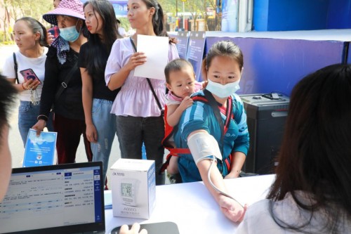 10月30日當天,當?shù)蒯t(yī)生聯(lián)合聲音大篷車配備的A.I.在線診療系統(tǒng),免費為云南怒江州瀘水市群眾進行義診。高血壓作為常見病,在山區(qū)村民中的發(fā)生率極高,現(xiàn)場工作人員用訊飛血壓計為瀘水市的群眾測量血壓,并通過在線診療系統(tǒng),讓群眾也能享受到省級三甲醫(yī)院的醫(yī)生診療資源。