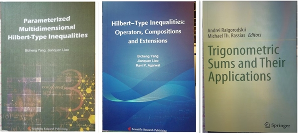 (1)Bicheng Yang, Jianquan Liao. Parameterized Multidimensional Hilbert-Type Inequalities (40萬字),Scientific Research Publishing, USA 2020. (楊必成,廖建全.參量化多重的Hilbert型不等式)