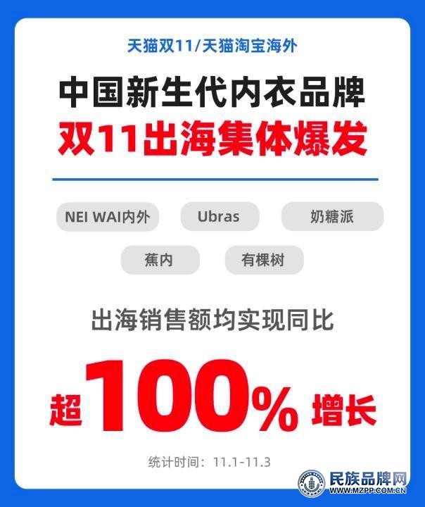 新品牌甚至在海外很受歡迎。天貓?zhí)詫毢M怆p11數(shù)據(jù)顯示,內(nèi)衣褲品牌占據(jù)了海中增速最快的國(guó)內(nèi)十大服飾品牌的半壁江山。中國(guó)新一代內(nèi)衣品牌NEI  WAI、Nai  Wai、奈堂派、Ubras、嬌內(nèi)、優(yōu)舒等集體出海爆發(fā),銷量均實(shí)現(xiàn)了同比100%以上的增長(zhǎng)。