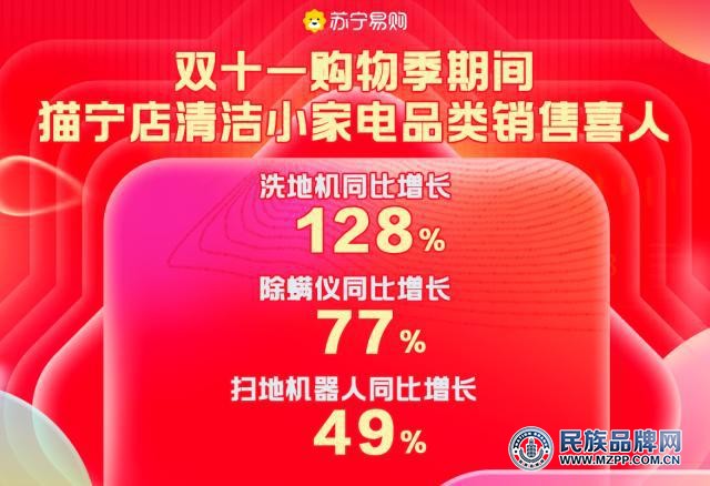 11月11日,天貓Suning.cn官方旗艦店(簡稱“毛寧店”)于11月11日爆發(fā),清潔小家電成為小家電銷量TOP1,銷量較上月增長400%。“雙十一”購物季,毛寧店清潔小家電銷售喜人,洗衣機同比增長128%,螨蟲同比增長77%,掃地機器人同比增長49%。
