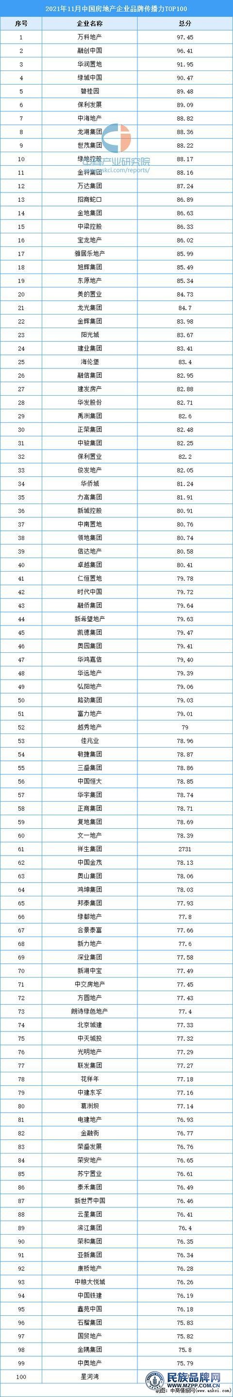 2021年11月中國房地產(chǎn)企業(yè)品牌傳播力TOP100