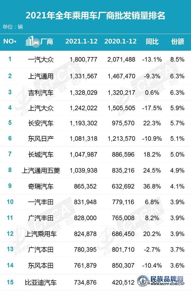 不過回想起來,自主品牌還是比較弱的。市場份額方面,雖然自主品牌的市場份額在2021年12月達(dá)到了46.3%的“高水平”,但也意味著合資品牌和海外品牌占據(jù)了63.7%的市場份額,與自主品牌的整體數(shù)量和市場份額相比,自主品牌仍處于相對較低的階段。而且,我們也看到,2021年國內(nèi)銷量排名第一、第二的單一汽車品牌,還有一汽-大眾、上汽-通用、自主品牌的領(lǐng)頭羊,依然沒有機(jī)會拿下榜首!
