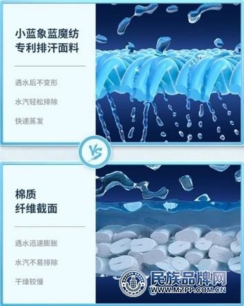 2012年,小藍(lán)象與擁有200年專業(yè)研發(fā)面料歷史的美國英威達(dá)公司合作。經(jīng)過上千種材料的試驗,在coolmax排汗紗的基礎(chǔ)上,共同研發(fā)了更適合睡衣的新型排汗紗HINOS-EVERY。超細(xì)材質(zhì)纖維四周開槽,遇水不變形,能快速排汗。解決了傳統(tǒng)睡衣只能吸汗而不能快速排汗的問題,被譽(yù)為“新一代神奇排汗紗”。